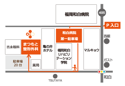 まつもと整形外科クリニックは、旧3号線和白交差点からすぐの場所にございます。